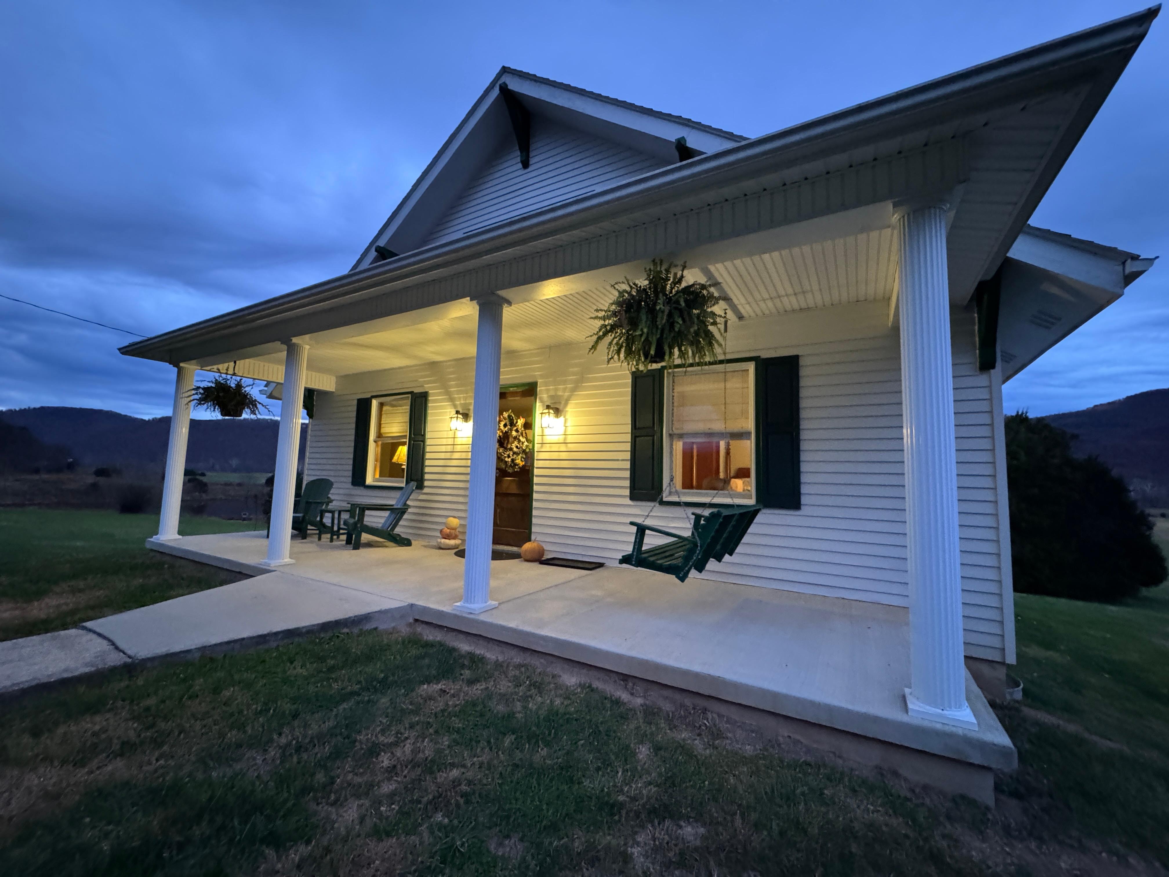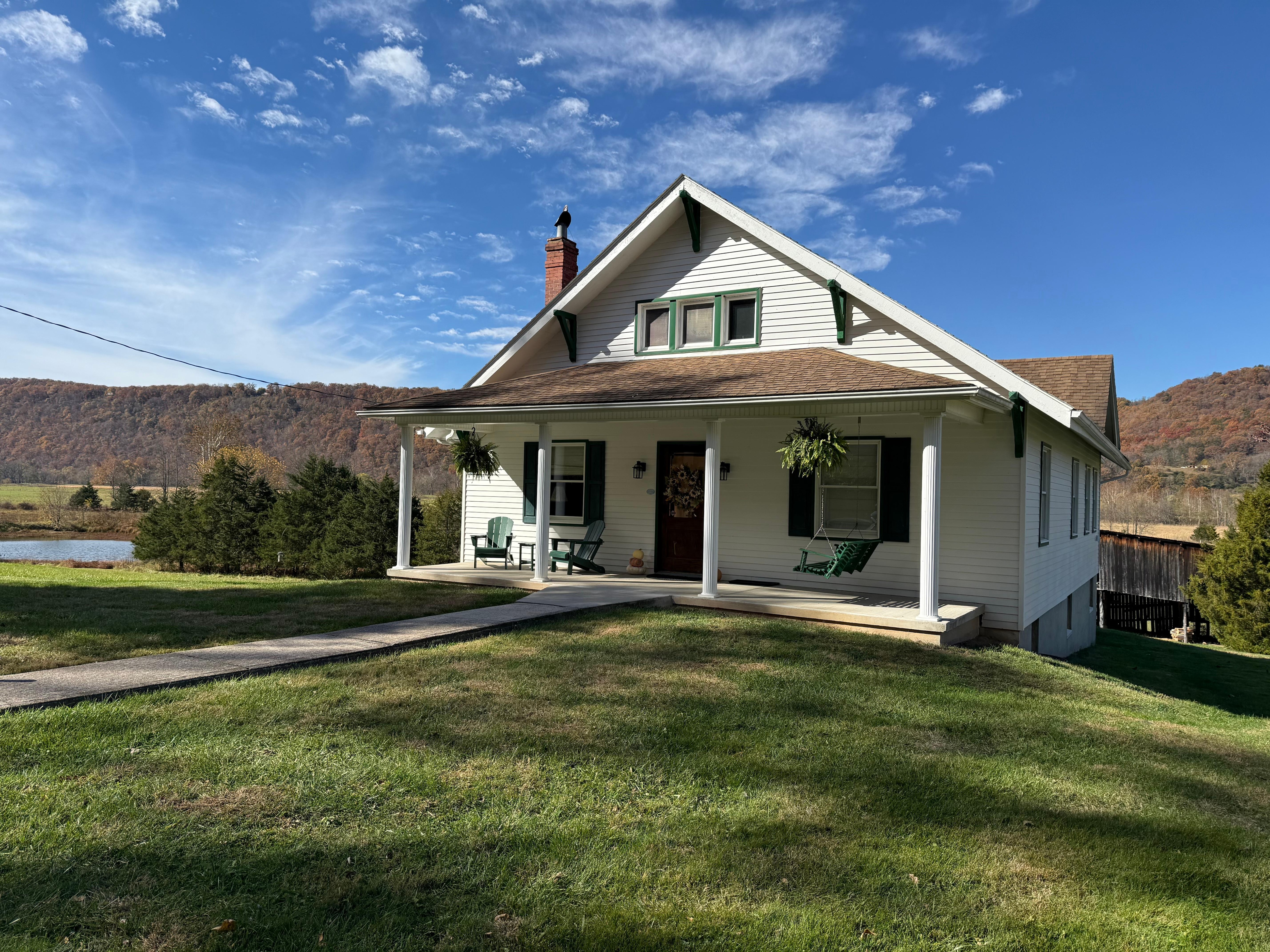 Nellie's Farmhouse offers a tranquil retreat in the Potomac Highlands. Nestled along the South Branch River, this farmhouse features scenic farm and mountain views, outdoor porches with picturesque vistas, a beautifully decorated bathroom with a soaking tub and walk-in shower. The newly renovated kitchen is well-equipped for cooking while maintaining its historic charm.