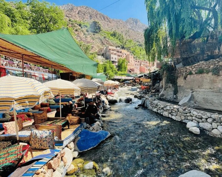 The excursion continues as you arrive in Setti Fatma, a charming village at the heart of the valley. Here, a local guide will lead you on a one-hour hike to a breathtaking waterfall. For those who prefer not to hike, the serene riverside offers a tranquil retreat to relax and soak in the natural beauty. Afterward, you’ll enjoy a delicious meal by the river (cost not included) before heading back to Marrakech, with an estimated arrival time of 5:00 PM.