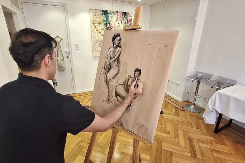 使用真人模型绘制人体 - Obelisco Bs.As。