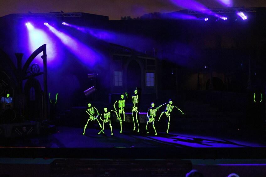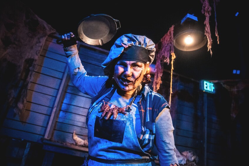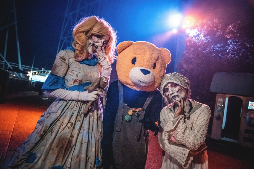 Evade FIVE angry haunts through EIGHT scare zones and FOUR vile vignettes. Seek shelter indoors, only to find you've entered a house of horrors. Quench your thirst for fear with fiendishly delicious cocktails, beer, and spirits at SIX themed bars and FIVE speakeasies. Feel the monstrous electricity of our LIVE show. Dance the night away and deepen the thrills with a nighttime coaster ride.