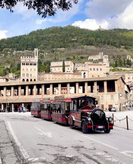 Discovering Gubbio has never been so simple (and fun)! If you are looking for a comfortable and original way to visit this fascinating Umbrian city, our tour aboard the panoramic train is the perfect choice.