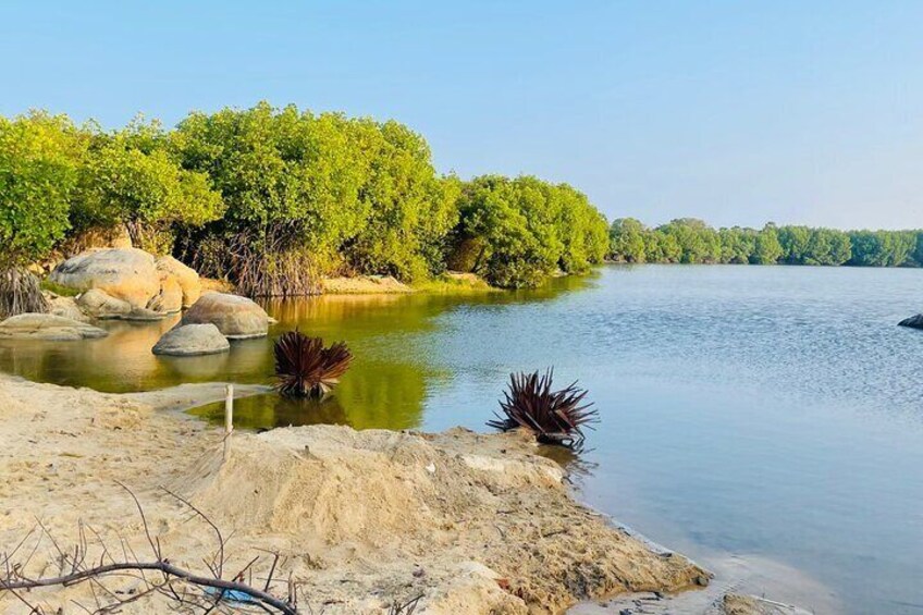 Step into the captivating world of Pottuvil Lagoon with our Mangrove Watching Eco Tour. A unique opportunity to explore the intricate mangrove ecosystem, this tour lets you witness nature's symphony in action. As you glide through the serene waters, keep an eye out for the graceful dance of crabs, the elusive presence of prawns & the colorful spectacle of various bird species. The lagoon comes to life as the morning sun casts a golden glow or the evening sun paints the sky in hues of orange and pink. Don't miss the chance to spot elephants swimming gracefully and formidable crocodiles lurking beneath the emerald waters in the lagoon, a sight to remember forever. Our knowledgeable guides, well-versed in the wonders of Arugambay's nature, will be your companions, sharing insights and stories along the way. Let the TukTuk whisk you away from your accommodation to this serene haven, and sip on a refreshing king coconut as you take in the sights.