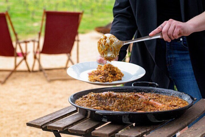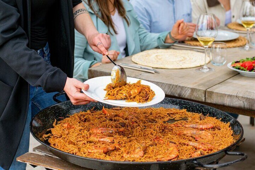 Paella or fideuá with organic wines in l'Empordà