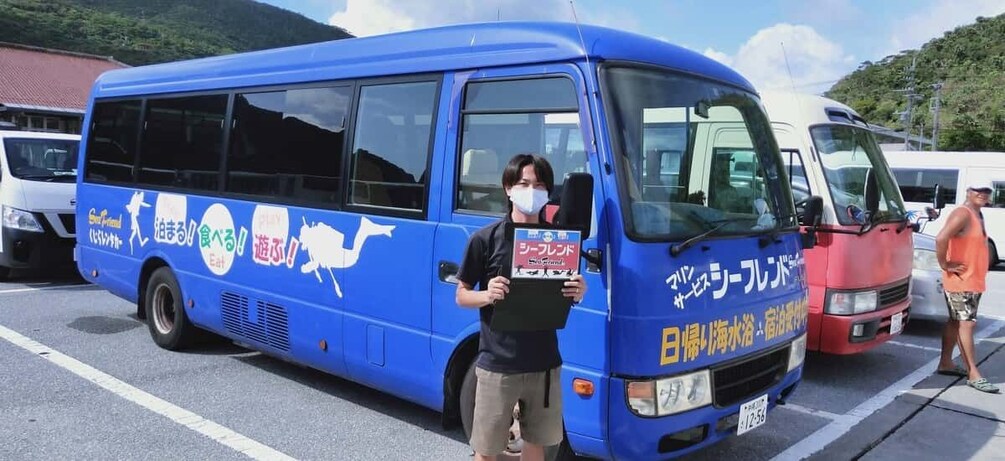 Depart from Naha to Tokashiki Island on a speed boat or ferry . Upon arrival at Tokashiki Port, look for a small bus with a sign that says “Sea Friend” on it. This shuttle bus will take you on a scenic journey from the port to Aharen Beach. Check in at the “Sea Friend” shop, then board a boat to go snorkeling.