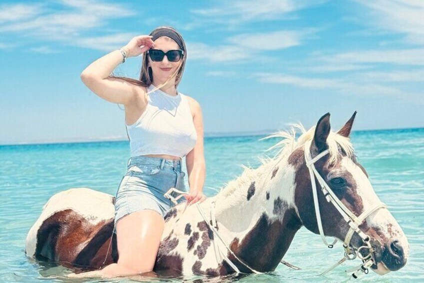 With Transfer: Includes 2 hours of horseback riding through the desert and along the beach, without a swimming stop. Free transfer from Hurg