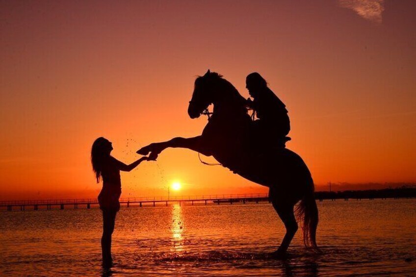 With Transfer: Includes 2 hours of horseback riding through the desert and along the beach, with a swimming stop. Free transfer is provided