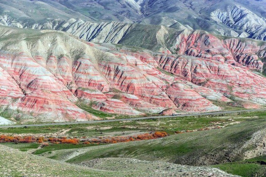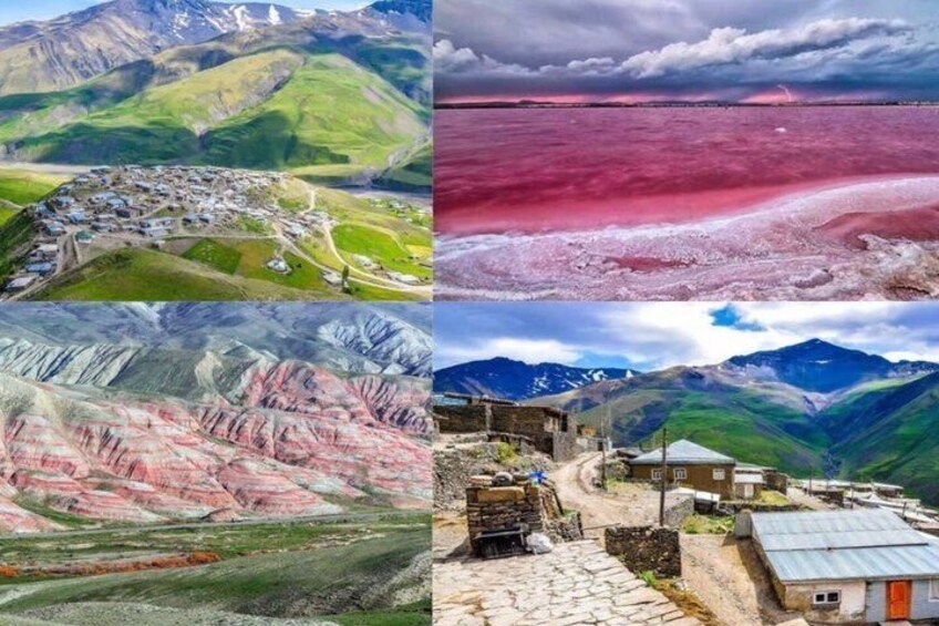 Baku: Pink lake Candy Cane Guba Khinalig Off road lunch inc in Multilingual