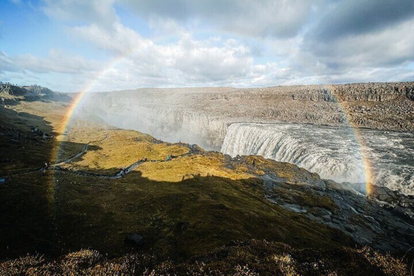 After Hverir, we will travel approximately 40 minutes to see Dettifoss, one of the most powerful waterfalls in Europe. On sunny days, a beautiful rainbow can be seen over the incredible waterfall. Visiting Dettifoss waterfall is a unique experience that should not be missed. There is also Selfoss waterfall, which we can see.