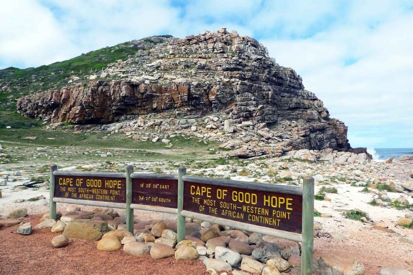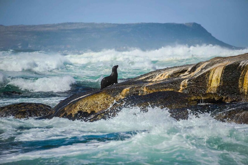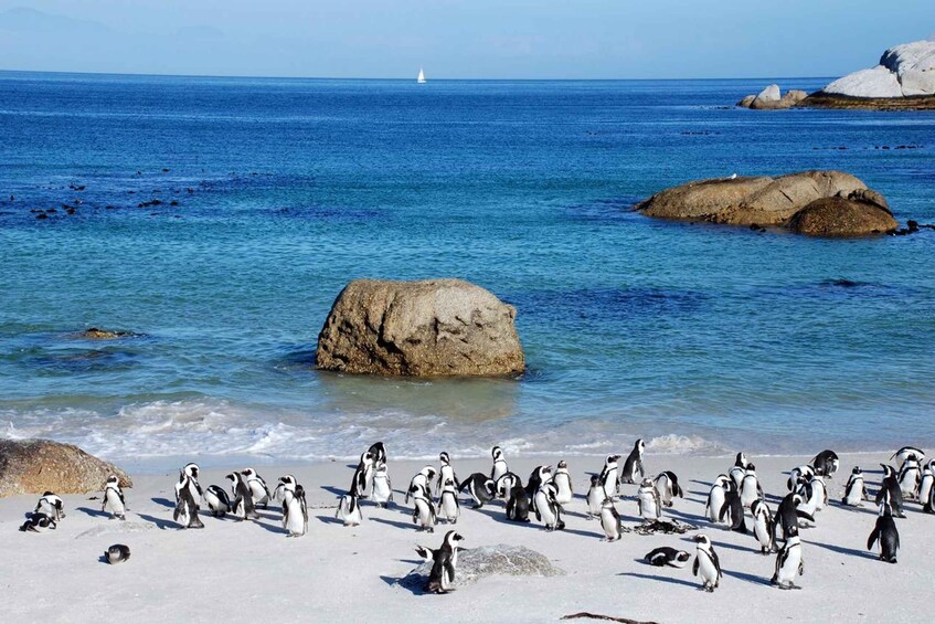游客将从市中心出发,首先在 Bo-Kaap(Coulerful Houses)停留 20 分钟拍照,然后前往坎普斯湾的 Maiden's Cove。在那里,您将欣赏到大海和山脉的美景!继续前往豪特湾,在那里您可以乘船前往杜克岛观看海豹岛的海豹(45 分钟)。之后,继续前往查普曼峰,那里有最令人叹为观止的景色。停留 20 分钟拍照,继续前往非洲大陆最西南端,好望角和好望角,游客们纷纷前来拍照。之后,沿着福尔斯湾海岸线前往博尔德斯海滩,在那里可以观赏非洲企鹅。