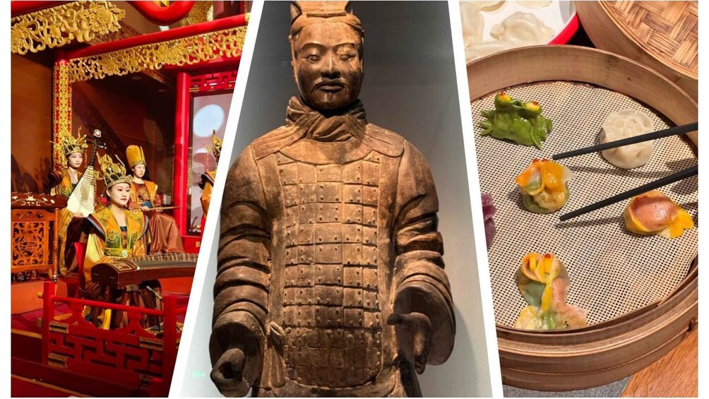 Then, you will be transferred back to Xi'an downtown to enjoy a feast of Chinese dumplings banquet. Nearly 20 varieties are made and inside the dumplings are stuffed with delicious vegetables, meats, and seafood. The famous restaurant Dumplings' Legend offers an original approach to Chinese food that merges the familiar comfort food of London's Chinatown with the culinary heritage of regional Chinese cuisine. The banquet is only the prelude to another feast for your entertainment. You will experience the local colorful and splendid Tang Dynasty Dance Show, a performance of music and dance that imitated the Tang Dynasty over one thousand years ago. It seems as if you are living in the palace of the Tang Dynasty. After that, the driver (no guide) will transfer you back to your hotel in Xi'an.