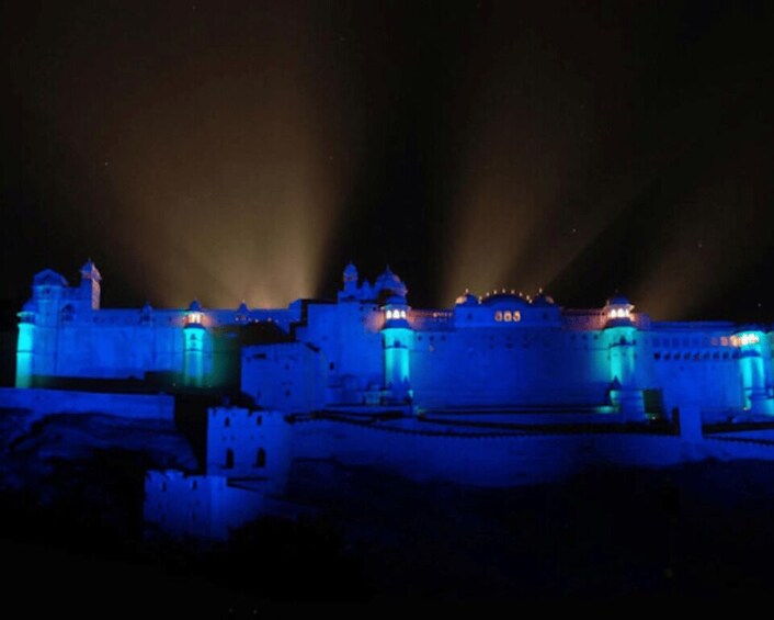 此选项包括一辆带司机的私人汽车(前往酒店接送)、一张 Amer Fort 灯光秀门票和晚餐。