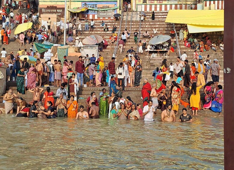 This is a morning boat-tour in the holy river the Ganges. It offers you a beautiful panoramic view of the city, famous ghats, the most venerated crematorium, the Manikarnika-ghat and much more.