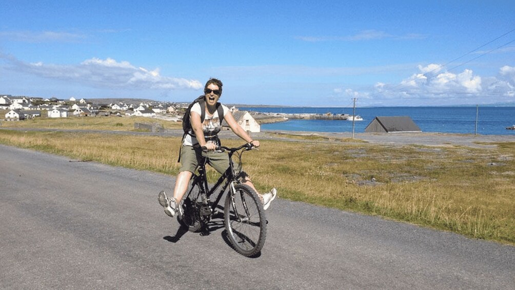 A continuación, comience su recorrido en bicicleta por la isla con su guía. Explora cementerios hundidos, naufragios, castillos y mucho más. Si no te apetece dar un paseo en bicicleta, súbete a la parte trasera de un divertido minibús para disfrutar de Inisheer desde una perspectiva local.