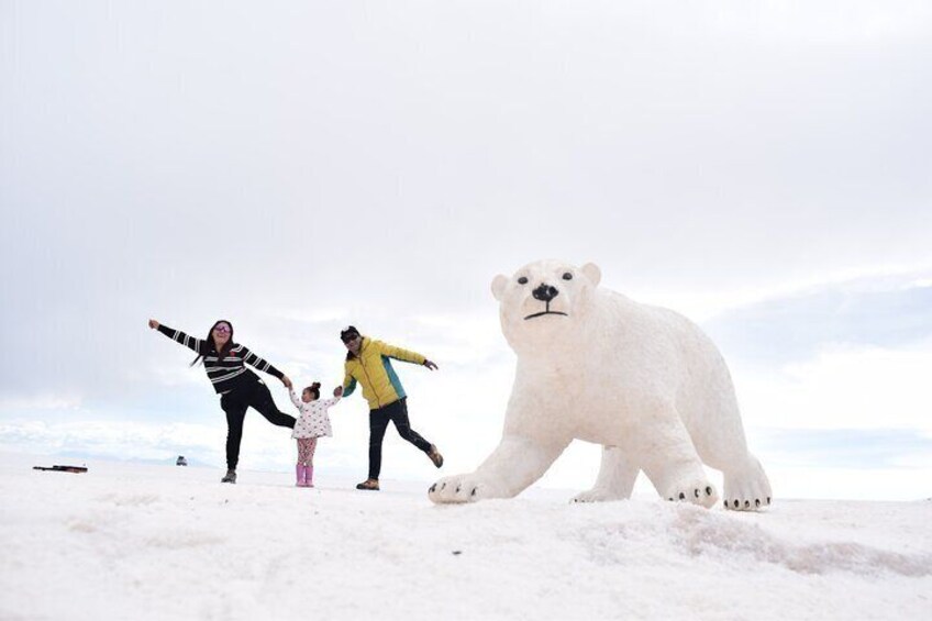 Early in the morning, you'll embark on a journey by car to the Salar de Uyuni salt flats. Start by visiting Uyuni's small salt museum (which was constructed with salt). Then you'll continue to tour the immense white expanse of the salar, or salt flats, stopping for one-of-a-kind photo ops as you go. Watch the sun go down over this one-of-a-kind landscape before getting some rest.