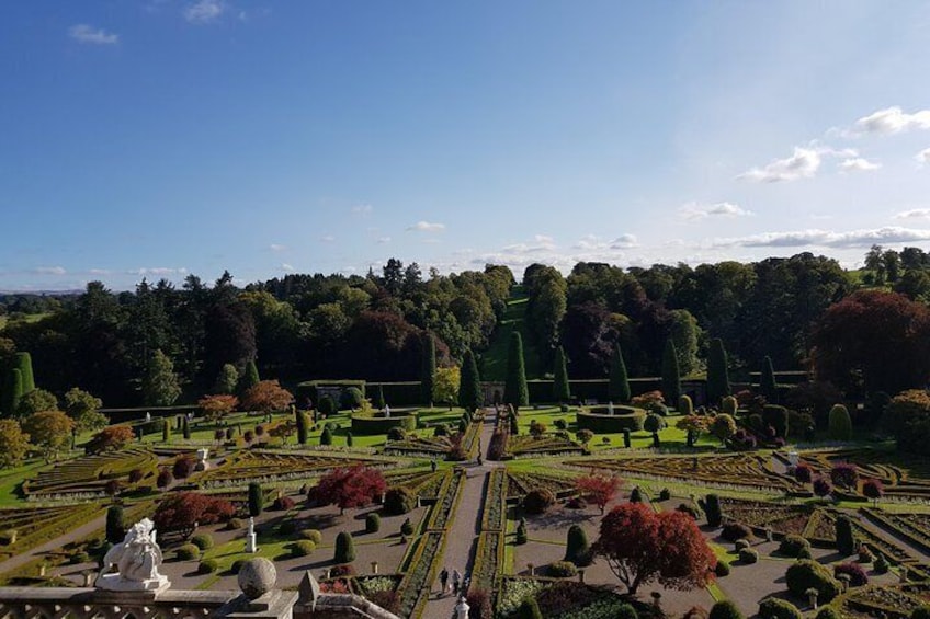 Our final stop of the day is the stunning Drummond Castle Estate, where you'll have the opportunity to explore the magnificent gardens, famously featured as the Gardens of Versailles in Outlander. These beautifully landscaped grounds are a true delight, offering a fabulous experience for anyone with an interest in gardening, flowers, and plants. If the weather is on your side, wandering through the vibrant gardens is sure to be a highlight of your day.