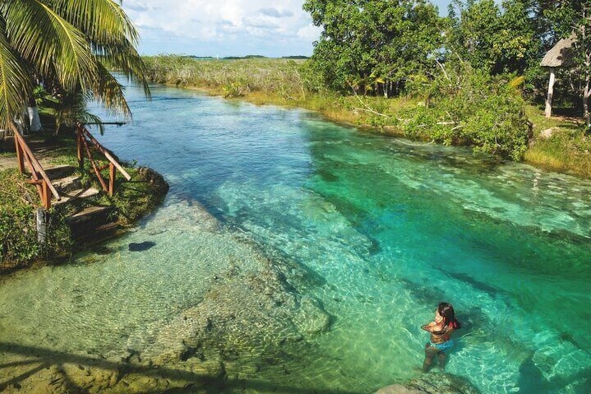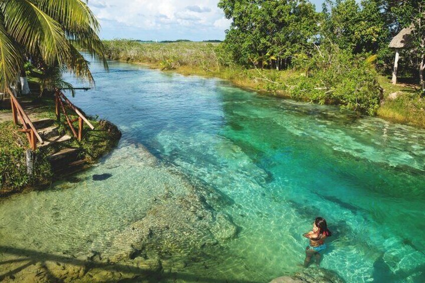 Entrance and 1 hour in the blue cenote of Bacalar