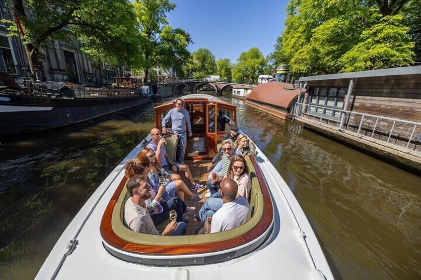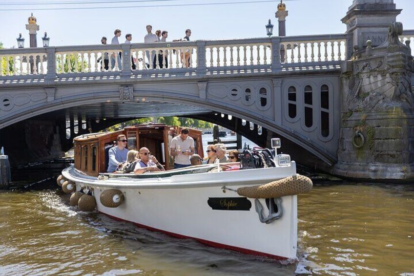 Explore Amsterdam's iconic canals on our charming cruise aboard the historic salon boat, Sophie (est 1911). With a maximum of 12 guests, this small-group experience ensures a cozy and personalized journey.