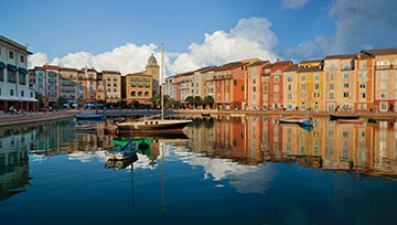 Relax in beautiful, timeless surroundings inspired by the playful and picturesque seaside village of Portofino, Italy. Wonderfully appointed rooms and suites are the perfect family escape. Delights of every kind and every flavor invite you to explore the wide-open piazza along the waterfront where water taxis whisk guests to the parks. Colorful, classic Italian, sun-splashed architecture reveals three enticing pools and every level of relaxation.