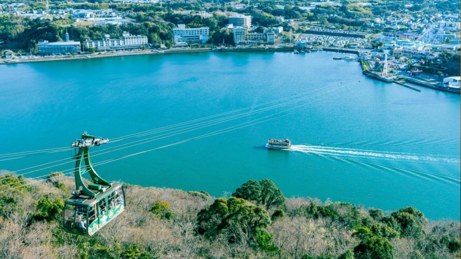 View Lake Hamana's tranquil cobalt blue waters from above on the Kanzanji Ropeway, the only cable car in Japan that runs over a lake. From the top of Mt. Okusa, sweeping panoramas cover the lake and the surrounding mountains, embellished by cherry blossoms, fall foliage, or whatever seasonal colors coincide with your travels.