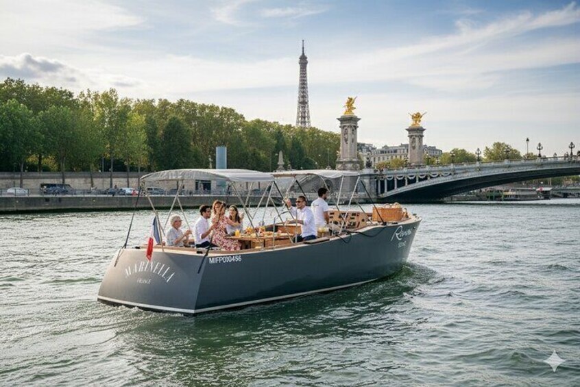 1 Hour Champagne Seine Cruise with Private Guide Experience