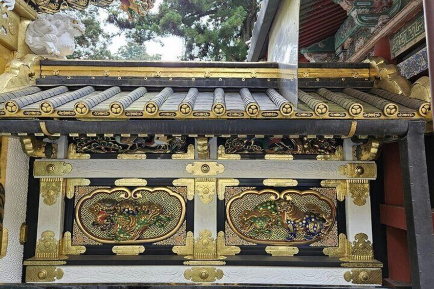 The lavishly decorated shrine complex consists of more than a dozen buildings set in a beautiful forest. Countless wood carvings and large amounts of gold leaf were used to decorate the buildings in a way not seen elsewhere in Japan, where simplicity has been traditionally stressed in shrine architecture.