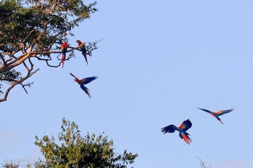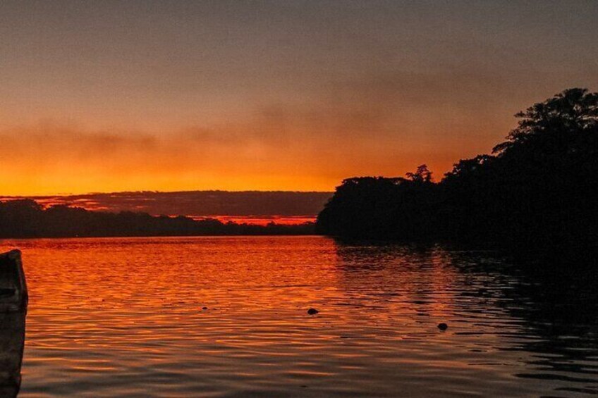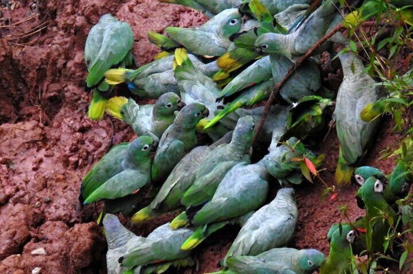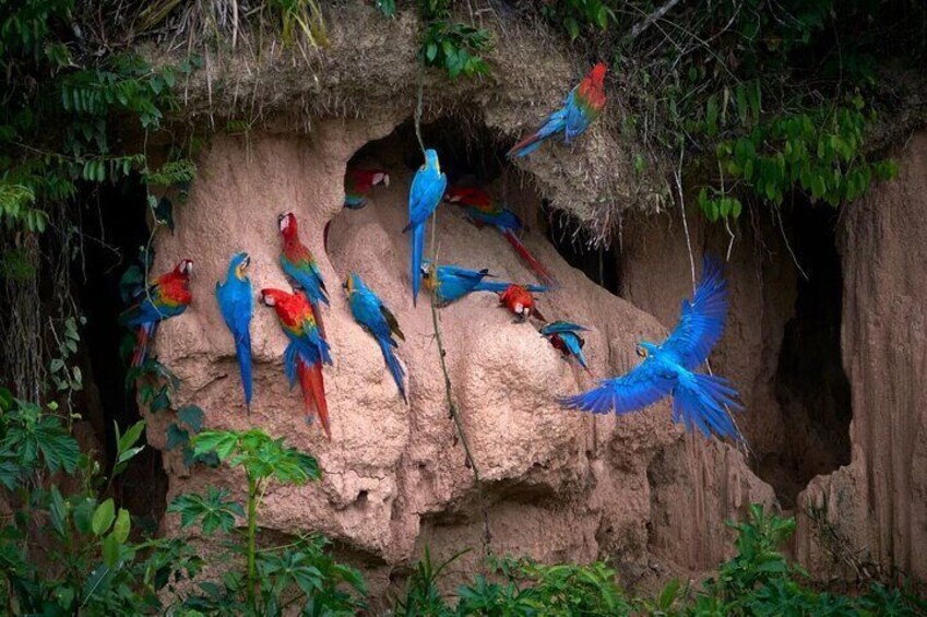 Amazon Jungle Sunrise with Parrots and Macaws Tambopata