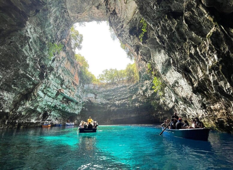 Start the tour with pickup in a minivan, minibus, or bus and travel to Melissani Lake. Walk through an underground path and discover the place of worship dedicated to Pan and Melissani. Learn the myths about Pan and Melissani while at the site and take a tour of the cave.