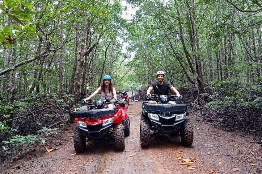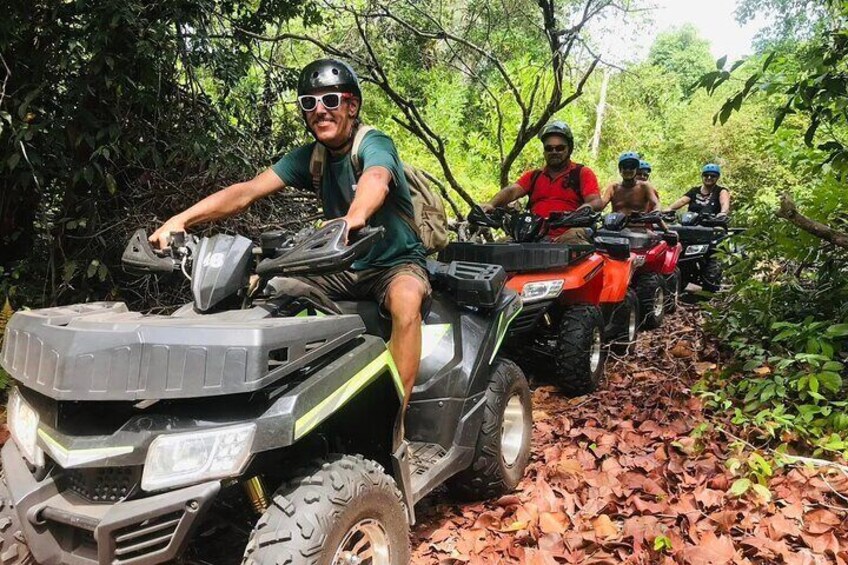 Rev on a 1-hour ATV ride that : takes you deeper into lush jungle trails, winding paths.