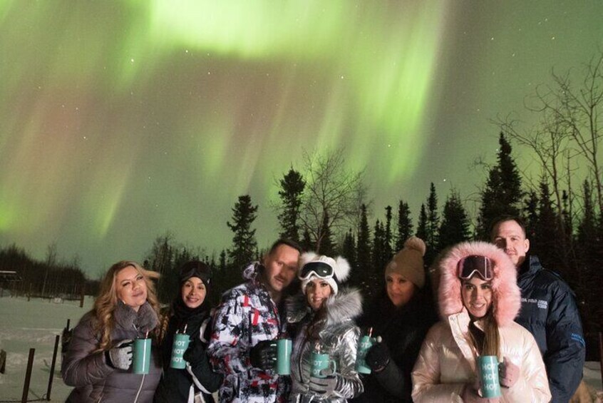 Relax in our wood heated yurt and enjoy our hot cocoa bar or sip on some tea as you wait for Lady Aurora to grace us with her presence.