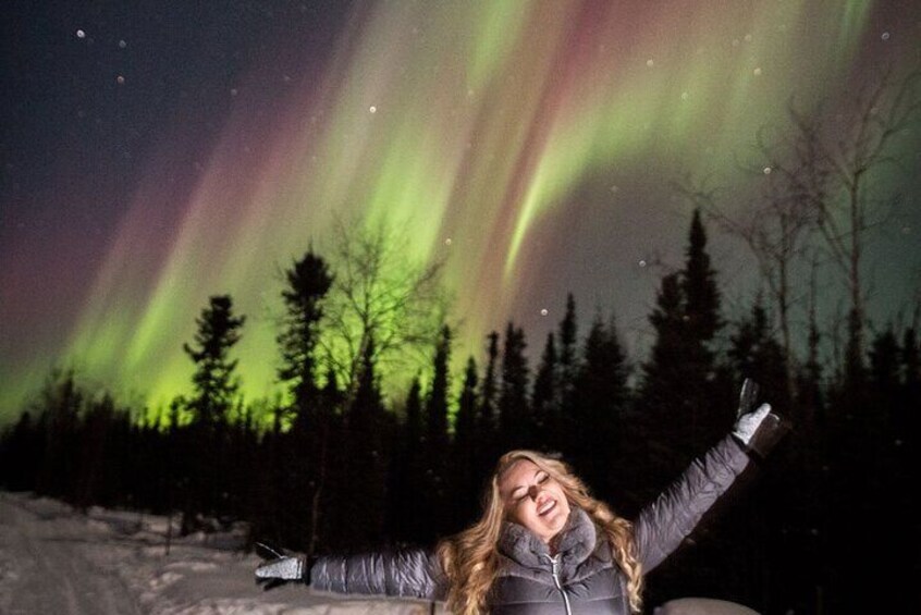 Head out on a 1/2 hour mush through the frozen winter utopia and scout the trail at multiple vantage points to view the Northern Lights. Watch the sky dance amongst the stars as you travel through the black spruce forest, over ponds and through fields.