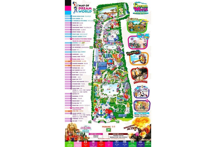 体验梦幻世界游乐园,度过永生难忘的充实一天。40 个游乐设施和景点分布在公园的四个不同区域:探险乐园、梦幻乐园、梦幻花园和梦幻世界广场。