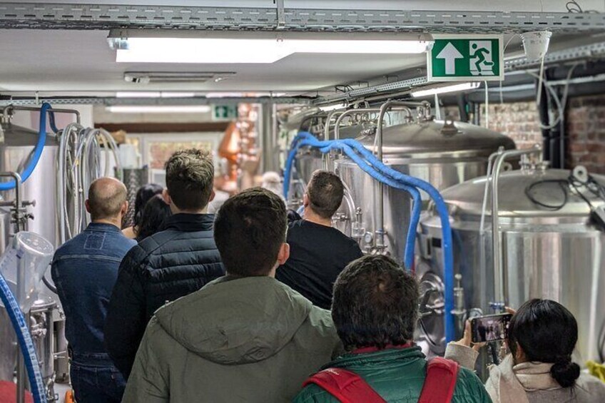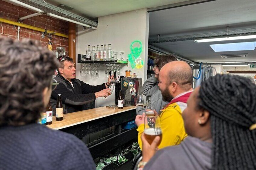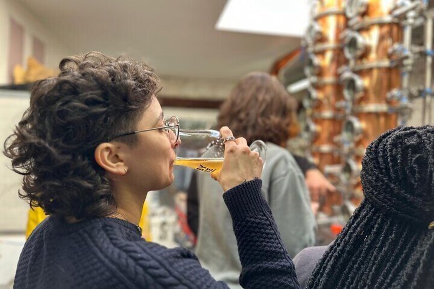 Degustación de cerveza en una micro cervecería y destilería de Bruselas
