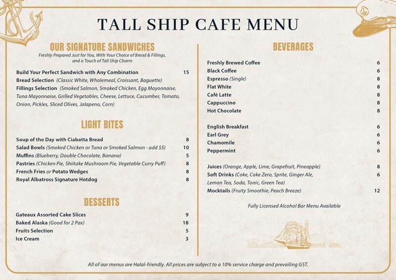 - Continuing its commitment to a distinctive dining experience, the NEW TALL SHIP CAFÉ offers a memorable lunchtime escape for both locals and international visitors. Guests can enjoy delicious meals on the water, surrounded by breathtaking 360 degree sea views and picture-perfect Harbourfront scenery