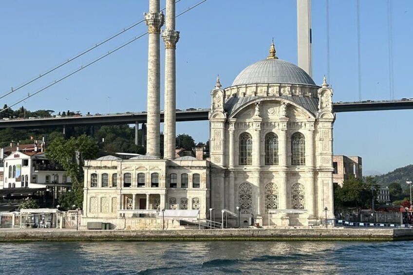From the Galata Bridge to Dolmabahçe Palace, Ortaköy Mosque, and Rumeli Fortress, you'll see Istanbul's celebrated landmarks. We glide under the Bosphorus Bridges, pass the Maiden's Tower, Topkapı Palace, and Süleymaniye Mosque. A unique highlight is our one-hour stop in the charming Beylerbeyi area on the Asian continent, offering a chance to explore or capture stunning photos.