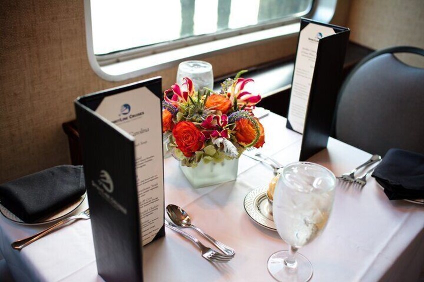 Sunset Dinner Cruise: 2.5-Hour Sunset Dinner Cruise with 3-course meal. Sail times 7pm-9:30pm, boarding begins at 6:30pm from Patriots Point.