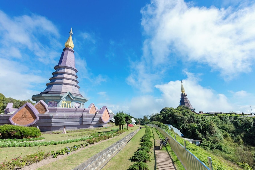 徒步旅行结束后,您可以品尝美味的当地午餐,然后参观雄伟的国王和王后的双塔,它们坐落在色彩缤纷的花园和山景之中。继续您的文化之旅,在热闹的苗族山地部落市场停留并与克伦族社区会面,近距离了解高地传统。在轰鸣的瓦奇拉坦瀑布结束您的一天,这里的雾气和瀑布的轰鸣声让您感觉充满活力。