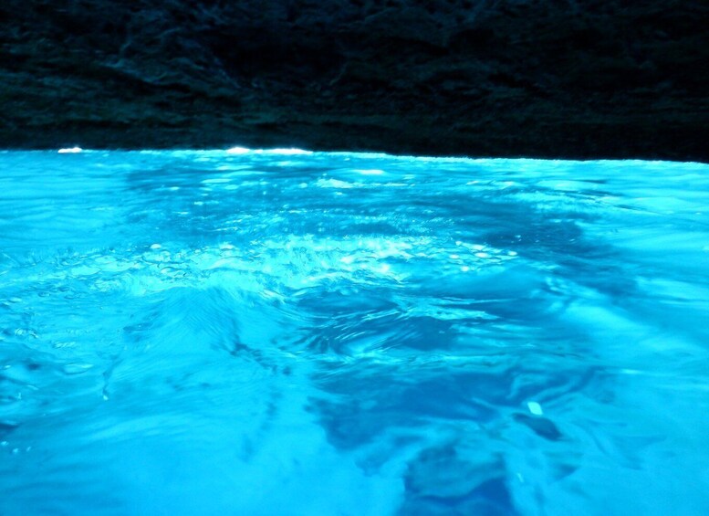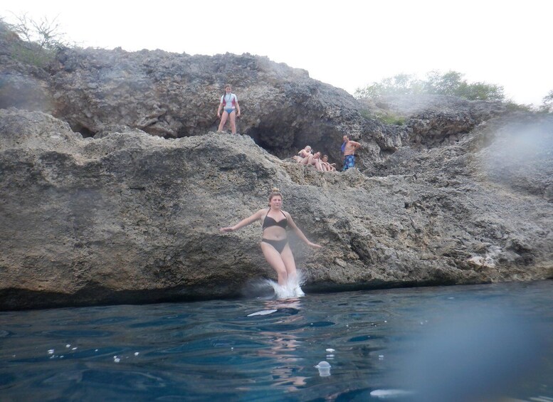 Find a spot and settle in for the scenic boat ride. Your first stop is the Blue Room, an extraordinary, mostly underwater cave located near Santu Pretu. It's easy to see why the cave gets its name. Everything inside the cave reflects the perfect turquoise, Caribbean-blue water. You'll see schools of fish dart in and around the rocky underwater terrain with crystal clear visibility. Notice how even the reflections of splashed waters remain that vivid blue! This cave is simply splendid.