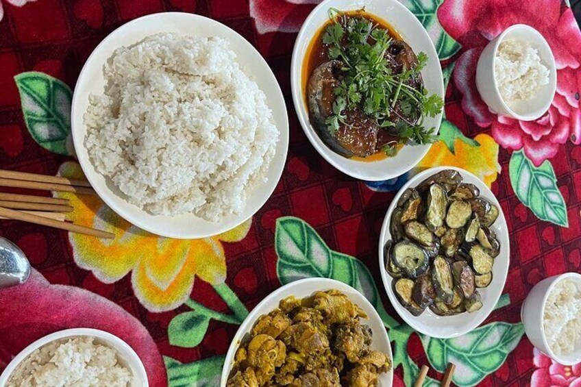 Cycling vegetable village, buffallo, Basket Boat and local lunch