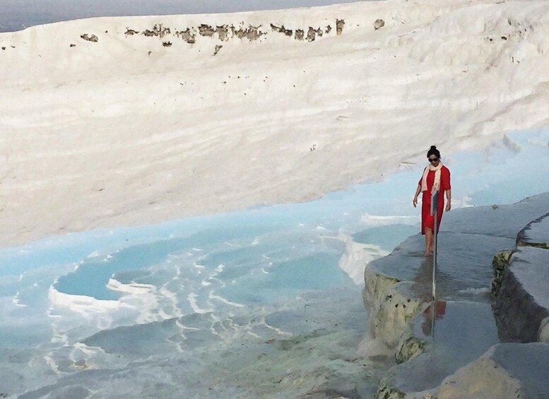 You will visit the first destination of Karahayit to see the Red Spring Waters. After Karahayit, we will drive to Pamukkale and begin visiting the ancient city of Hierapolis. The highlights of Hierapolis are Necropolis, Roman Baths, Domitian Gate, Latrina, Oil Factory, Frontinious Street, Agora, Byzantium Gate, Triton Fountain, Cathedral, Apollon Temple, Plutonium, Theater, and Antique Pool. Then we will pass to Calcium Terraces and pools.