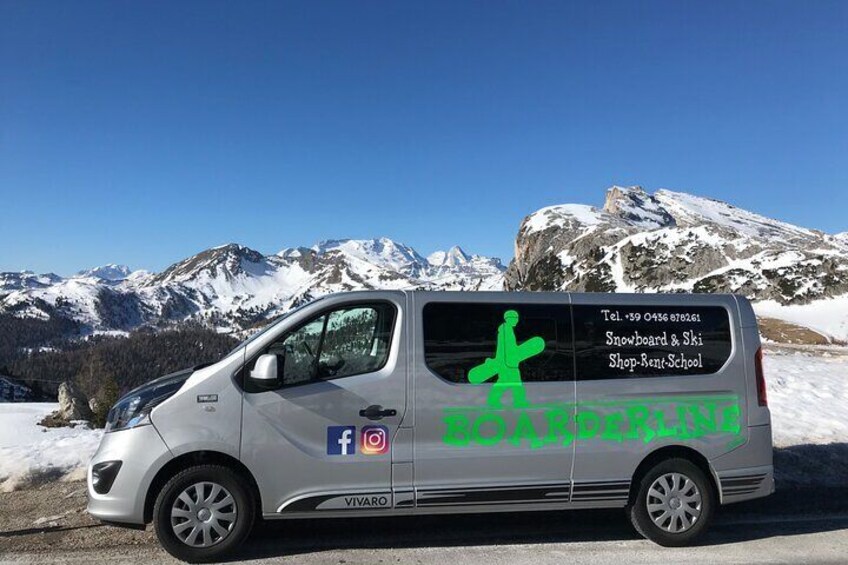 Full day tour around the Dolomites with your own equipment (ski or snowboard), including shuttle