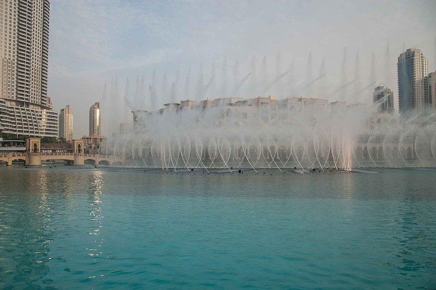 - 乘坐迪拜喷泉湖之旅,坐在前排观看城里最好的表演,欣赏世界上最大的表演喷泉