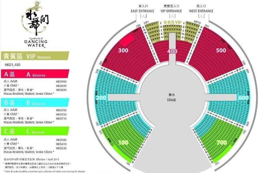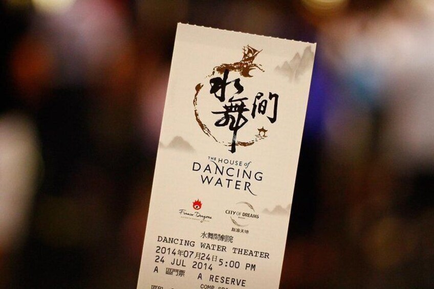 - The House of Dancing Water is valid only for the fixed date, fixed time and performance. This ticket may not be resold, distributed as premium or with any monetary gain. The local ticket supplier is not responsible for lost, stolen and damaged tickets or other items of personal property. For security purposes and upon request, the holder of this ticket may be subject to inspection and for these purposes must open any bag, package or other item which is in his or her possession before entering the venue.