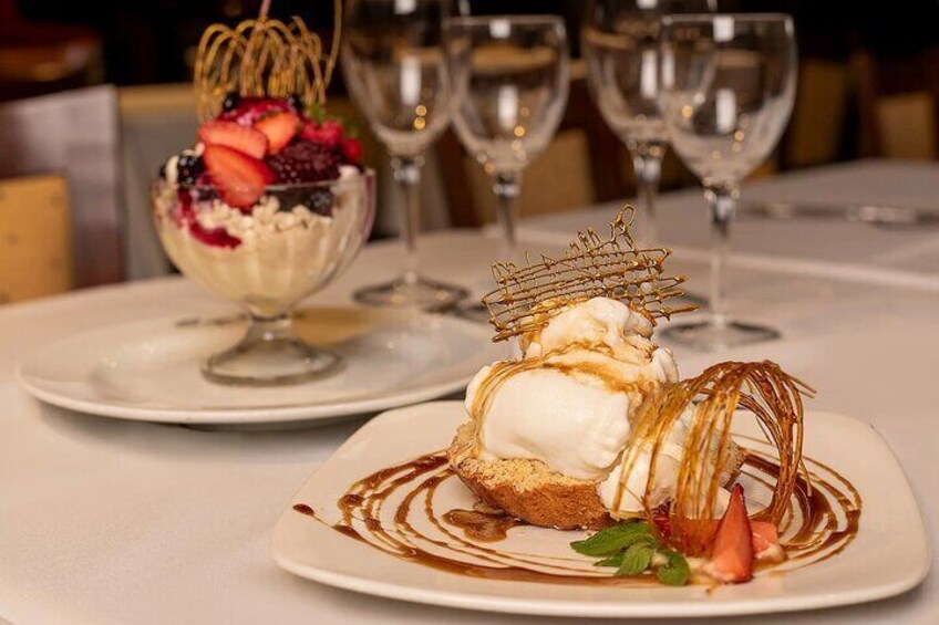 Starter, Main Course and dessert and 2 drinks.