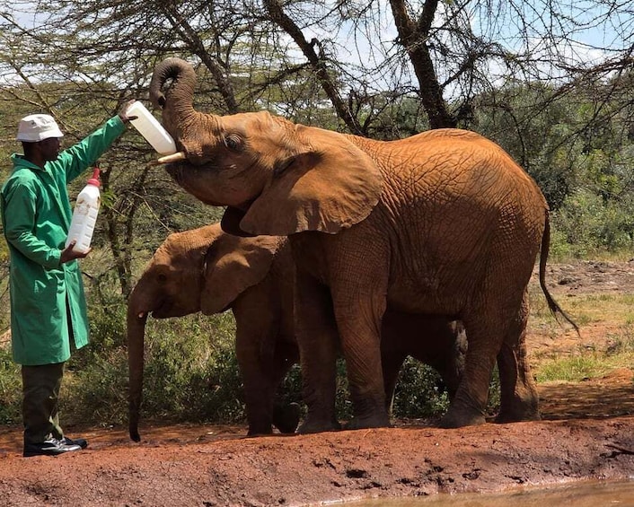 Nuestro guía acreditado lo recibirá y lo llevará al fideicomiso del orfanato de elefantes. Disfrute de esta sesión guiada con guías y guardianes experimentados de este santuario, que se lleva a cabo entre las 11 a.m. y las 12 del mediodía todos los días, y conozca los esfuerzos realizados por este santuario en la conservación de los elefantes en Kenia. Sin embargo, disfruta de la vista de estos elefantes bebés y crea grandes recuerdos para toda la vida mientras te dedicas a la fotografía. Durante la visita, también podrás ver cómo toman su botella de leche mientras se relajan y juegan tomando baños de arena, un baño de barro fresco en el calor del día. También tiene la oportunidad de adoptar y apadrinar a cualquiera de los elefantes bebés huérfanos de su elección durante la visita.