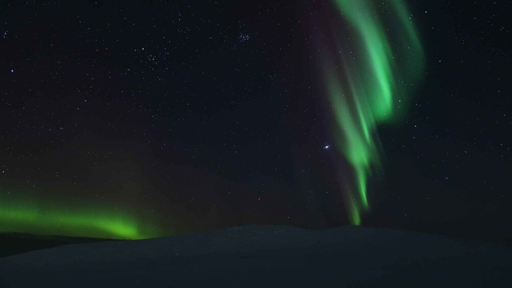 Viajará cómodamente a bordo de nuestra minivan climatizada mientras perseguimos las auroras boreales a lo largo de las pintorescas carreteras entre Kiruna y el Parque Nacional Abisko, uno de los mejores lugares del mundo para avistamientos de auroras. Nuestros experimentados guías lo llevarán a los mejores lugares de observación, elegidos en función del clima y las condiciones del cielo en tiempo real.