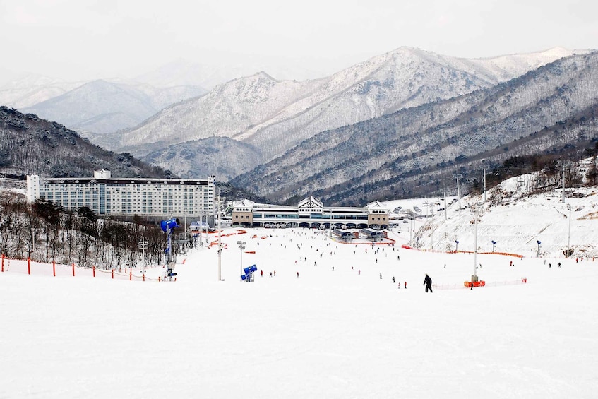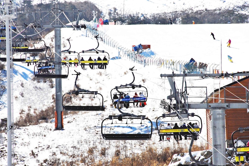 用滑雪或滑雪板在雪地上滑雪,您可以选择增加一小时的基础课程,该课程将向您介绍滑雪设备和一些基本姿势,或者乘雪橇去山上。对于基本 [滑雪/滑雪板] 套餐,您只能乘坐一次电梯。若您当天想现场升级为 5 小时无限次缆车票,则需额外支付 60,000 韩元现金。或者您也可以考虑选择【滑雪/单板滑雪 + 缆车】套餐,其中包含 5 小时无限次缆车通行证,价格更优惠。