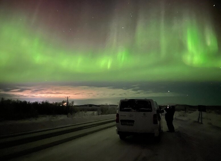 Start your Northern Lights tour with an easy pickup from your chosen location in Kiruna, then relax on the scenic drive to world-famous Abisko National Parkâknown as one of the best places on Earth to see the aurora borealis. Visit top aurora-viewing spots along the way, stop for breathtaking photo opportunities, and get personalized photography tips from your guide to help you capture the perfect northern lights shot. Afterwards, enjoy a peaceful walk near the Abisko canyon, surrounded by the quiet Arctic landscape.