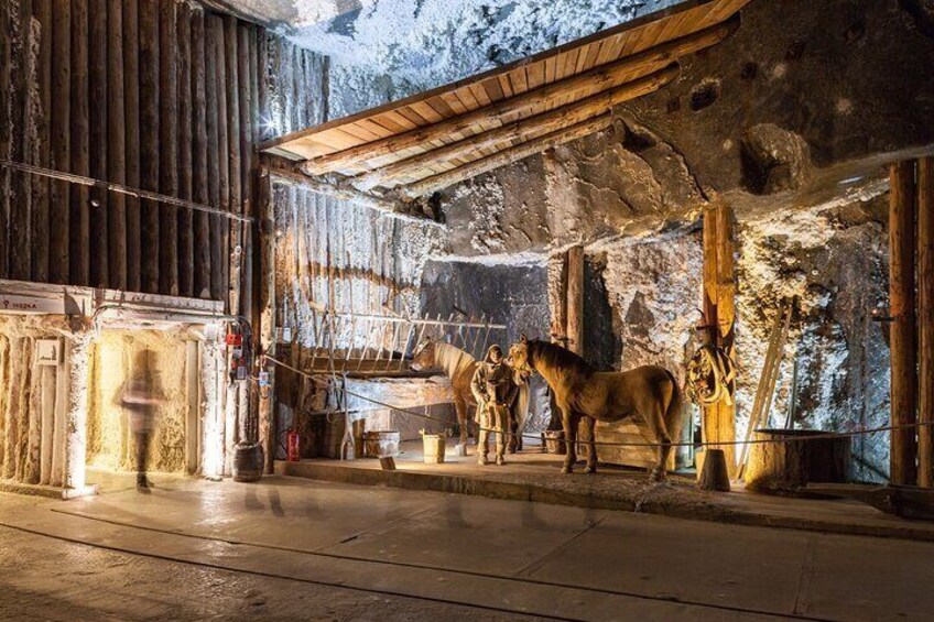 Option description: Choose this option for a ticket for a guided tour to Salt Mine with transportation from the central meeting point.