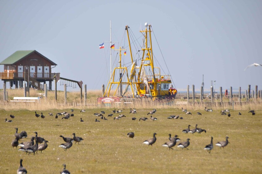 Hooge is the second-largest of the Halligen, covering six square kilometers. At the jetty you can rent bicycles, go on a discovery tour by horse-drawn carriage or on foot (bookable on site). Hallig Hooge awaits you for a day trip with more than 2 hours of stay. In the midst of the largest, completely intact natural area, the Wadden Sea National Park, you can fully experience life on a Hallig.