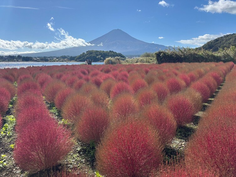 The tour departs from Shinjuku (LOVE Statue) at 7:30 AM. Relax in a comfortable air-conditioned coach as you head toward the scenic Kawaguchi area, with Mt. Fuji towering in the distance.